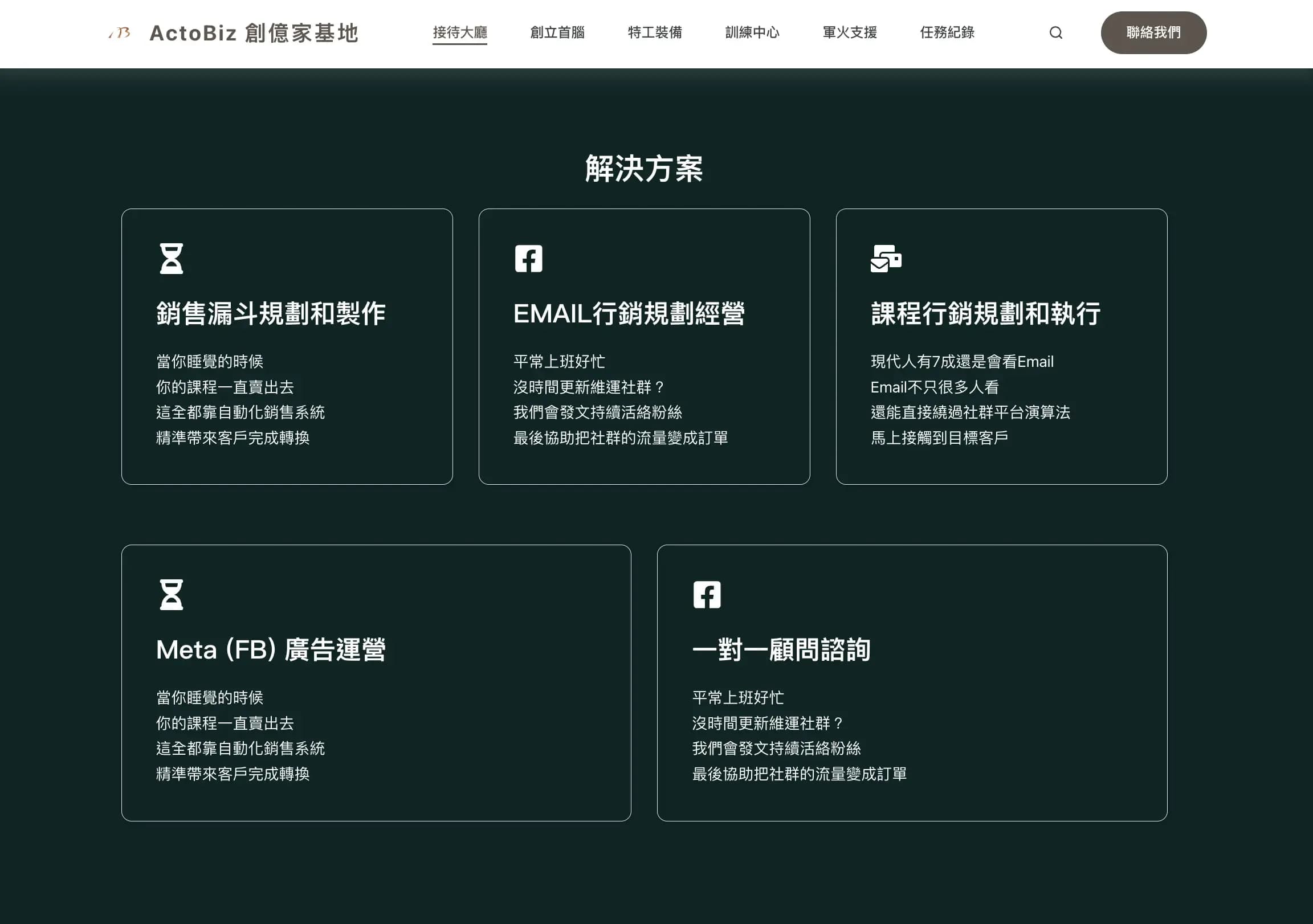 - 模組化漏斗設計:為每個服務獨立設計著陸頁與 CTA 區塊,強化導流能力,也方便串接廣告與 SEO