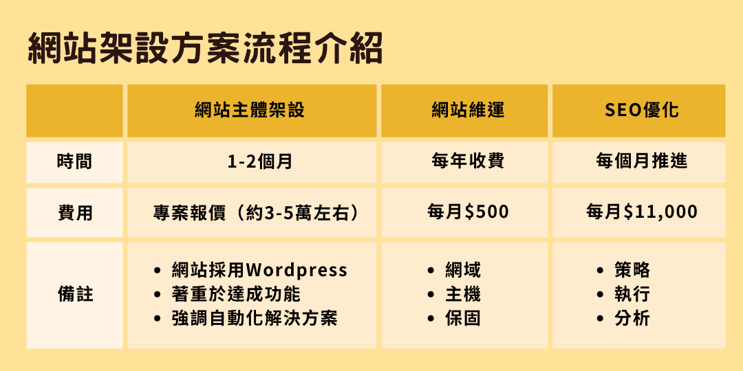 - 合理的維護機制:合理的維護費用以及提供長期規劃,讓客人清楚規劃方向是否與自己的規劃一致